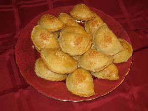 A flavorful, savory, tasty filled pastry that can simply melt in your mouth! Each community has their unique varieties; each family, their favorites! Our “Rhodesli” family, (from the Island of Rhodes, currently Greece, but in the times of our family, a Turkish or Ottoman possession) loves this moon shaped pastry, filled with a “conduchu” (filling) of rice and cheeses, as well as those filled with a mouth-watering mixture of sautéed eggplant, onions and tomatoes!